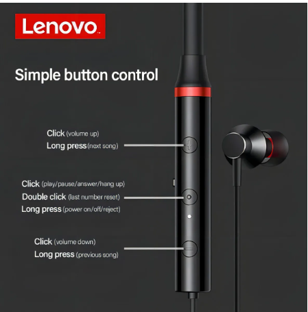 Disfruta de música y llamadas con total libertad gracias a los Auriculares Inalámbricos Lenovo HE05X versión genérica, diseñados con estructura ergonómica tipo neckband que se adapta cómodamente al cuello.