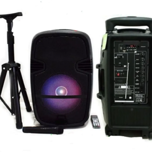 Su conexión Bluetooth permite reproducir música de forma inalámbrica desde celulares, tablets o computadores, mientras que las luces LED integradas crean un efecto visual dinámico para fiestas y celebraciones. Su diseño tipo cabina facilita el transporte y el uso tanto en interiores como exteriores.