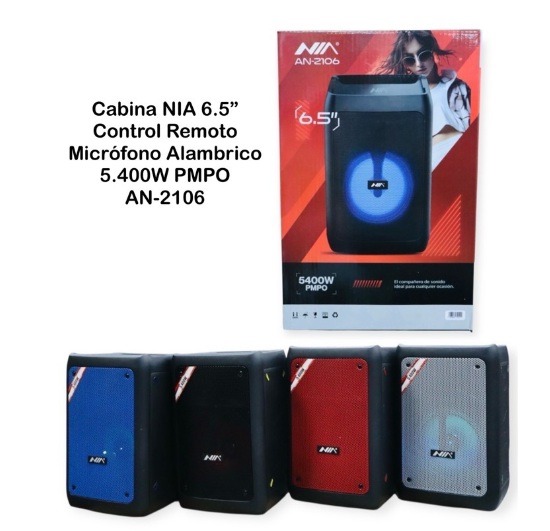 La Cabina NIA referencia AN-2106 es una opción práctica y funcional para quienes buscan un parlante portátil compacto sin renunciar a una buena potencia de sonido. Su parlante de 6.5 pulgadas ofrece audio claro y equilibrado, ideal para reuniones familiares, uso en casa o espacios pequeños.