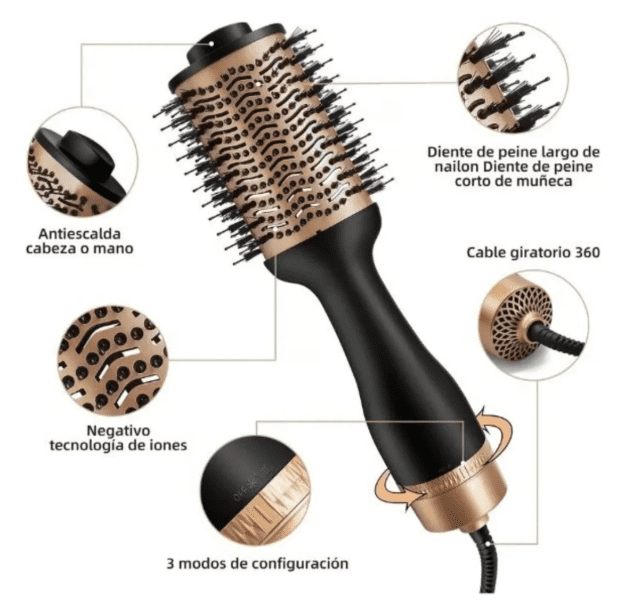 Tipo: Cepillo secador de aire caliente con tratamiento de keratina