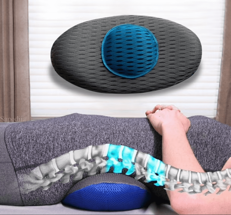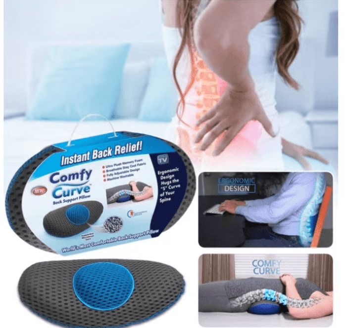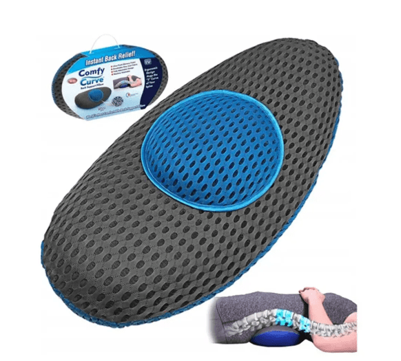 cojín lumbar comfy curve, cojín ergonómico espalda baja, soporte columna cama silla, almohada para postura, cojín ortopédico para dolor lumbar
