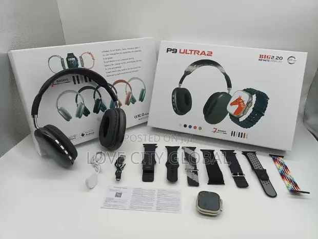 Combo P9: Smartwatch, Diadema Inalámbrica, Correas Intercambiables y Cargador