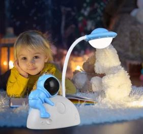 lámpara luna astronauta, luz nocturna LED 3D, lámpara decorativa recargable, luz de noche astronauta, lámpara escritorio temática, iluminación futurista, lámpara infantil espacio, decoración con luz LED, lámpara de mesa astronauta, regalo para amantes del espacio