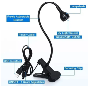 Lámpara UV LED Clip-On para Uñas con Brazo Flexible y Secado Rápido Color Negro