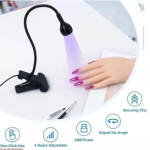 La Lámpara UV LED Clip-On es ideal para el secado rápido de uñas en gel, semipermanentes y nail art. Su diseño con brazo flexible y clip ajustable permite un uso cómodo y preciso desde casa o en espacios reducidos.