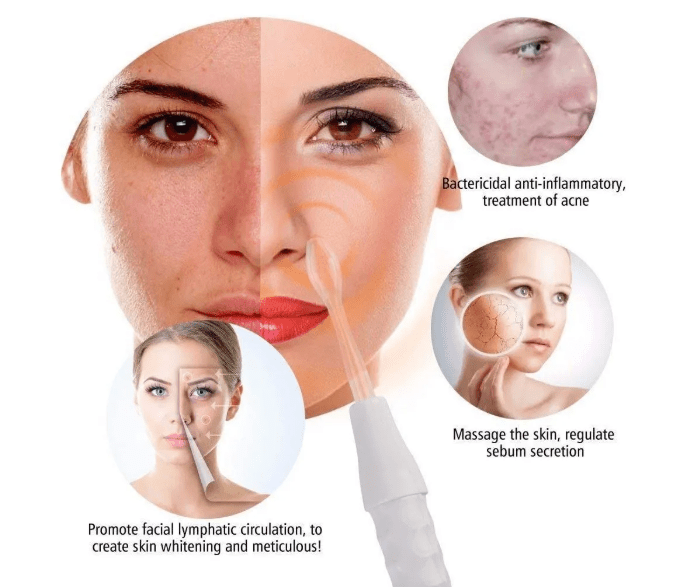 masajeador alta frecuencia facial, electroterapia acné arrugas, estimulador capilar alta frecuencia, equipo estético rejuvenecimiento, cuidado facial profesional en casa