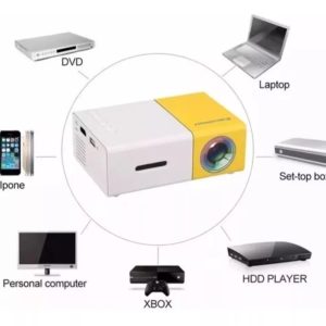 Mini proyector portátil con entrada HDMI, USB y AV. Reproduce películas, videos y presentaciones en gran formato desde múltiples dispositivos. Compacto, práctico y fácil de usar.