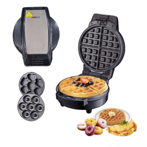 La Mini Waflera 3 en 1 Sokany es la solución perfecta para preparar desayunos y meriendas de forma rápida y deliciosa. Su diseño compacto incluye moldes intercambiables para waffles, sándwiches calientes y parrilla tipo grill, todo en un solo dispositivo. Gracias a su recubrimiento antiadherente, la limpieza es fácil y sin complicaciones. Ideal para cocinas pequeñas, apartamentos o estudiantes, esta máquina multifuncional combina practicidad, diseño moderno y eficiencia energética. Disfruta de waffles dorados, sándwiches crujientes o carnes asadas con un solo electrodoméstico.