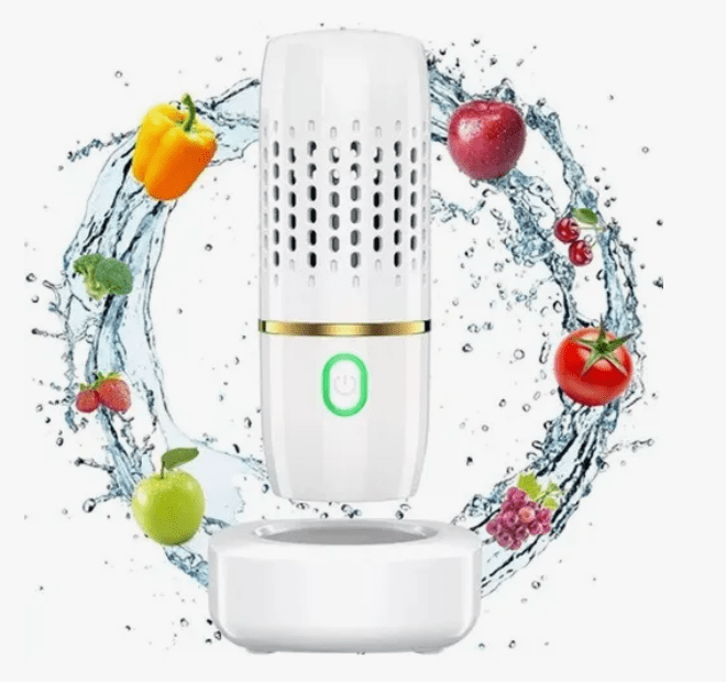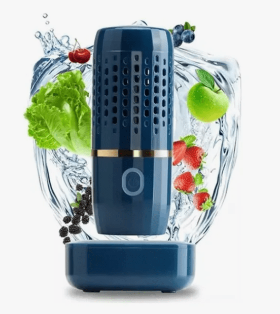 Purificador ultrasónico portátil y recargable para esterilizar frutas, verduras, carnes y utensilios. Elimina pesticidas, bacterias y residuos químicos sin químicos.