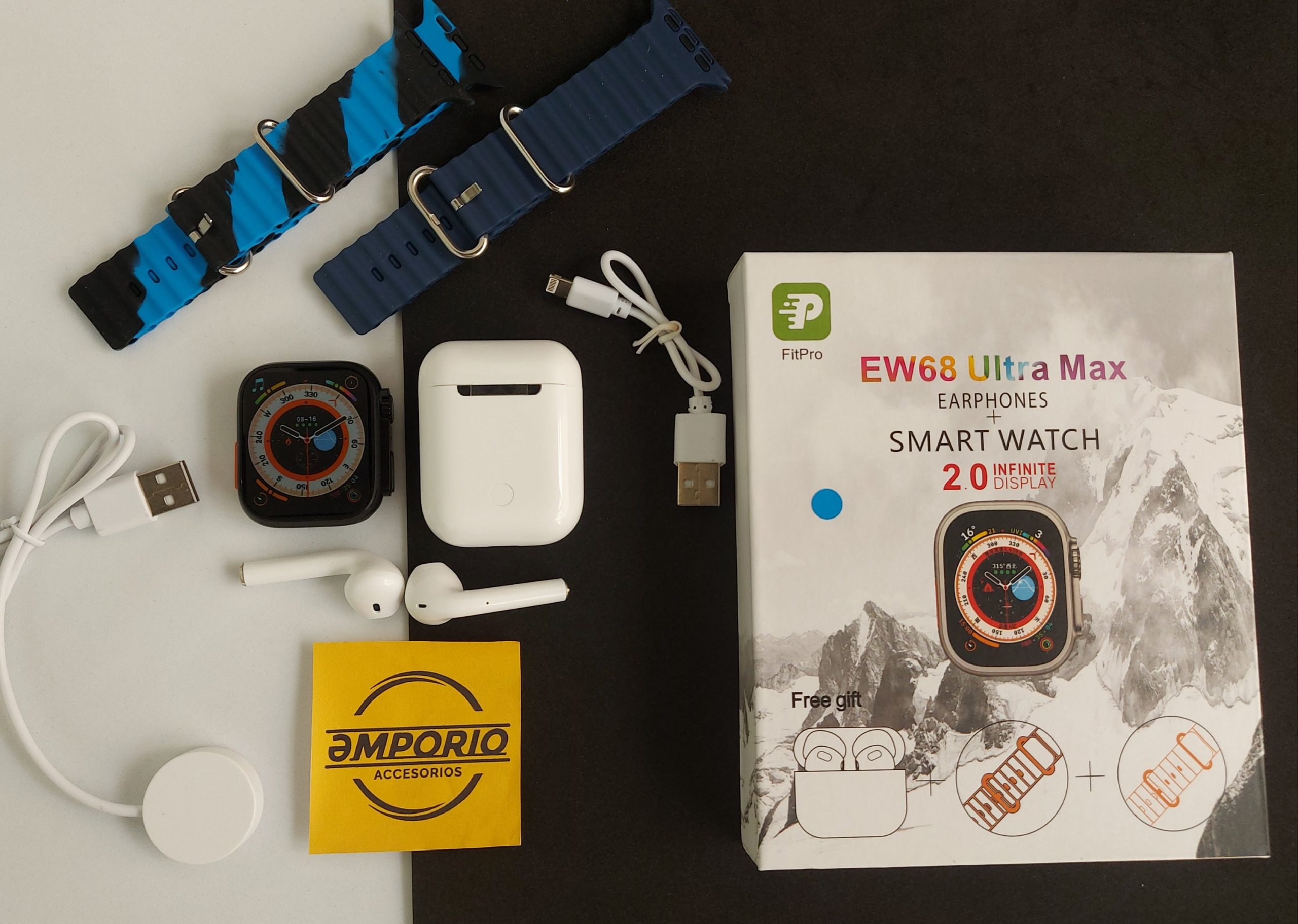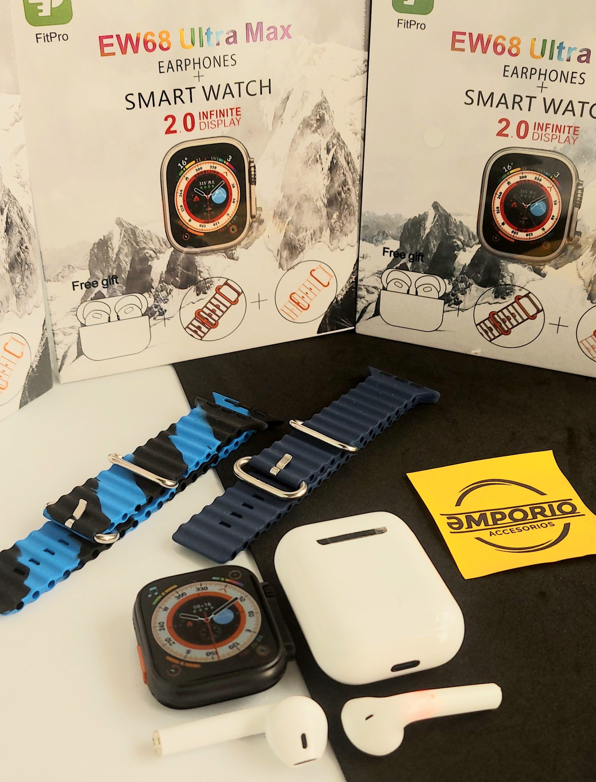¡No esperes más para elevar tu estilo y conectividad! Compra ahora el Combo Ultra EW68 en Emporio Accesorios y disfruta de tecnología de punta y accesorios integrales en un solo paquete.