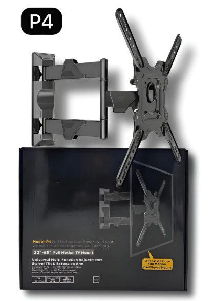 El soporte para televisor P4 es una solución resistente y funcional para montar tu TV en la pared de forma segura. Fabricado en acero reforzado, permite soportar televisores de diferentes marcas y tamaños entre 32 y 65 pulgadas, tanto en modelos finos como gruesos. Su diseño compacto mantiene el televisor cerca de la pared, ofreciendo una apariencia moderna y ordenada, además de optimizar el espacio del ambiente.
