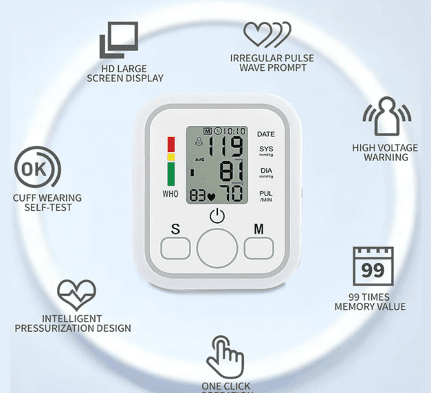 tensiómetro digital presión arterial, medidor de presión automático, monitor de presión para brazo, tensiómetro con memoria, tensiómetro LCD doméstico