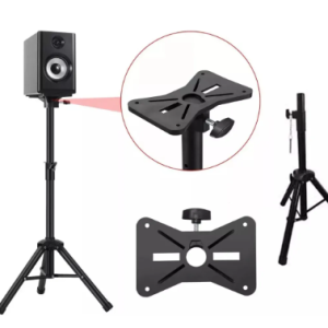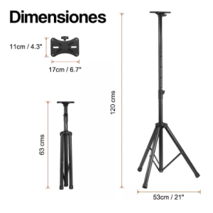 Trípode ajustable para cabinas y parlantes con altura máxima de 120 cm, estructura resistente y diseño estable. Ideal para mejorar la proyección del sonido en eventos, reuniones y presentaciones.